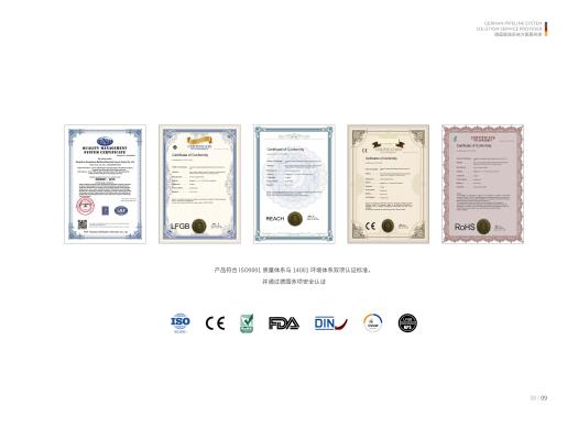 近年来亚洲市场日益成熟,德国Euogene正式进入中国市场,将高品质的管道系统引入亚太地区消费者家中。德国Euogene欧根管道产品均采用北欧进口优质原料,以及欧标准黄铜配件,获得欧盟CE认证、FDA认证、国家权威质检、加州65等检测。欧根管道所有产品都严格执行原料、在线、成品三重检验,层层把关,保障最高品质。